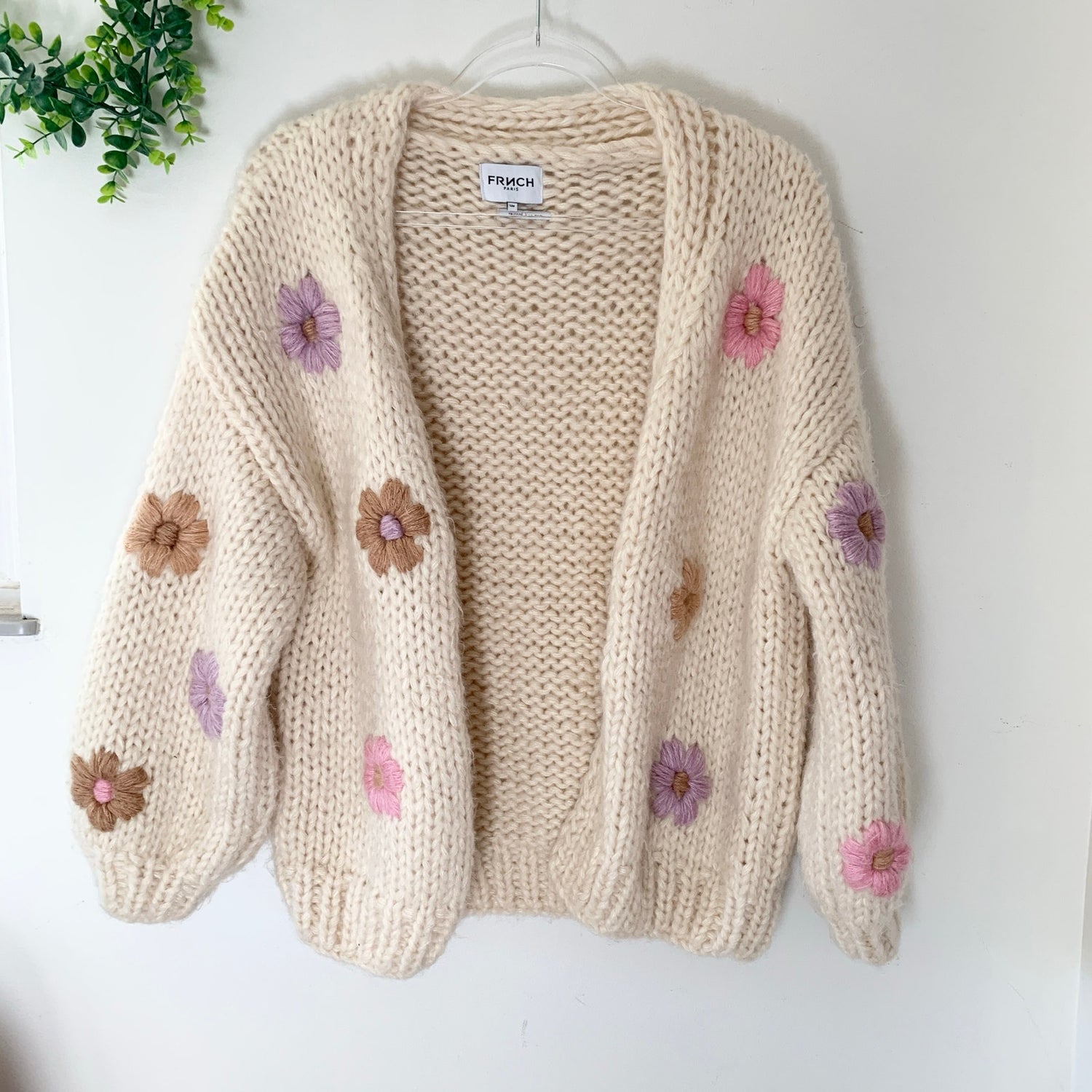 Frnch Flower Print Taya Cream Chunky Cardigan Sweater Small Medium