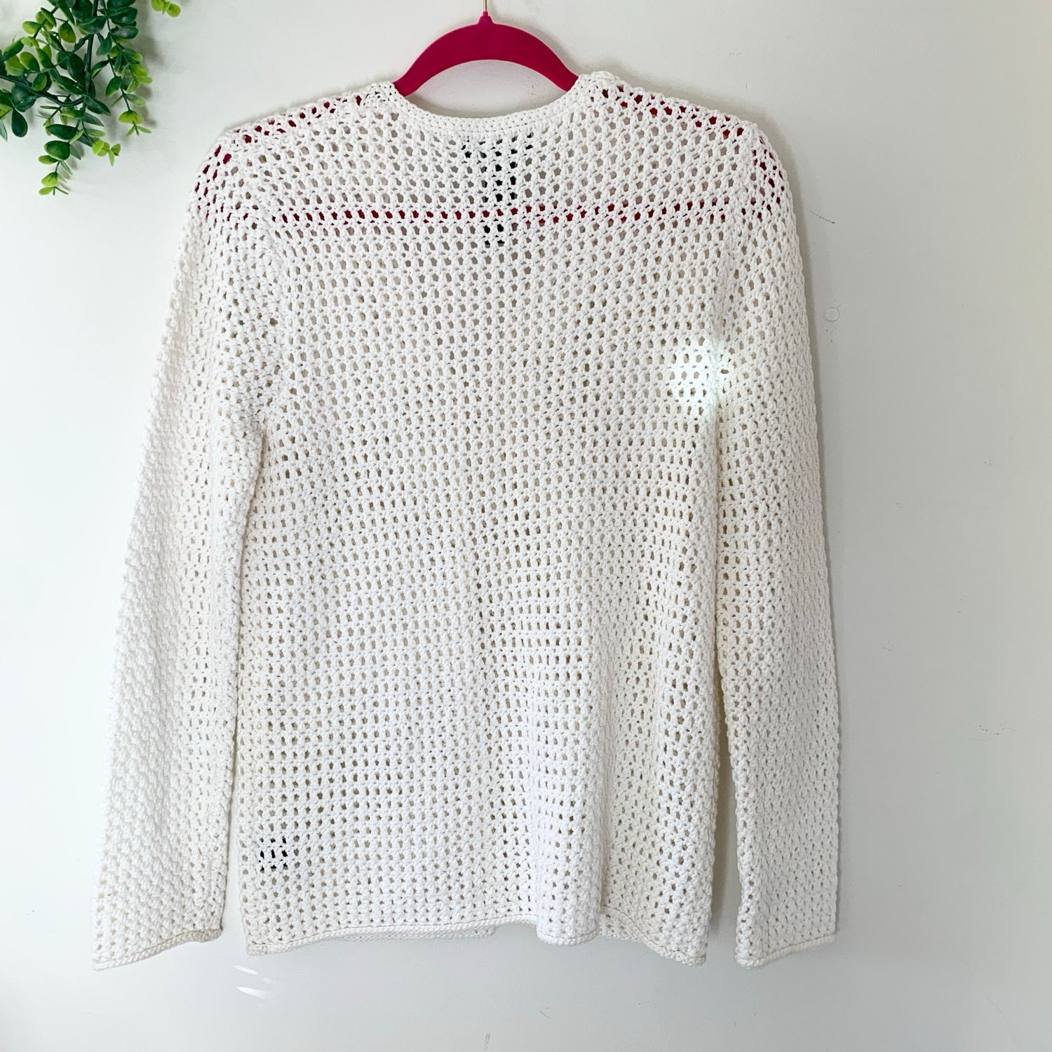 Ralph Lauren Hand Knit White Button Front Cotton Spring Cardigan Large