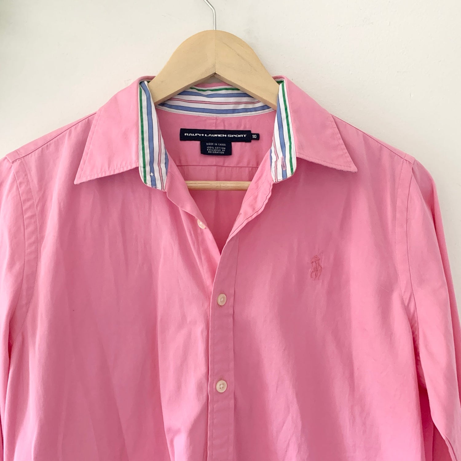 Ralph Lauren Sport Pink Stripped Collar Long Sleeve Button Down Shirt 10