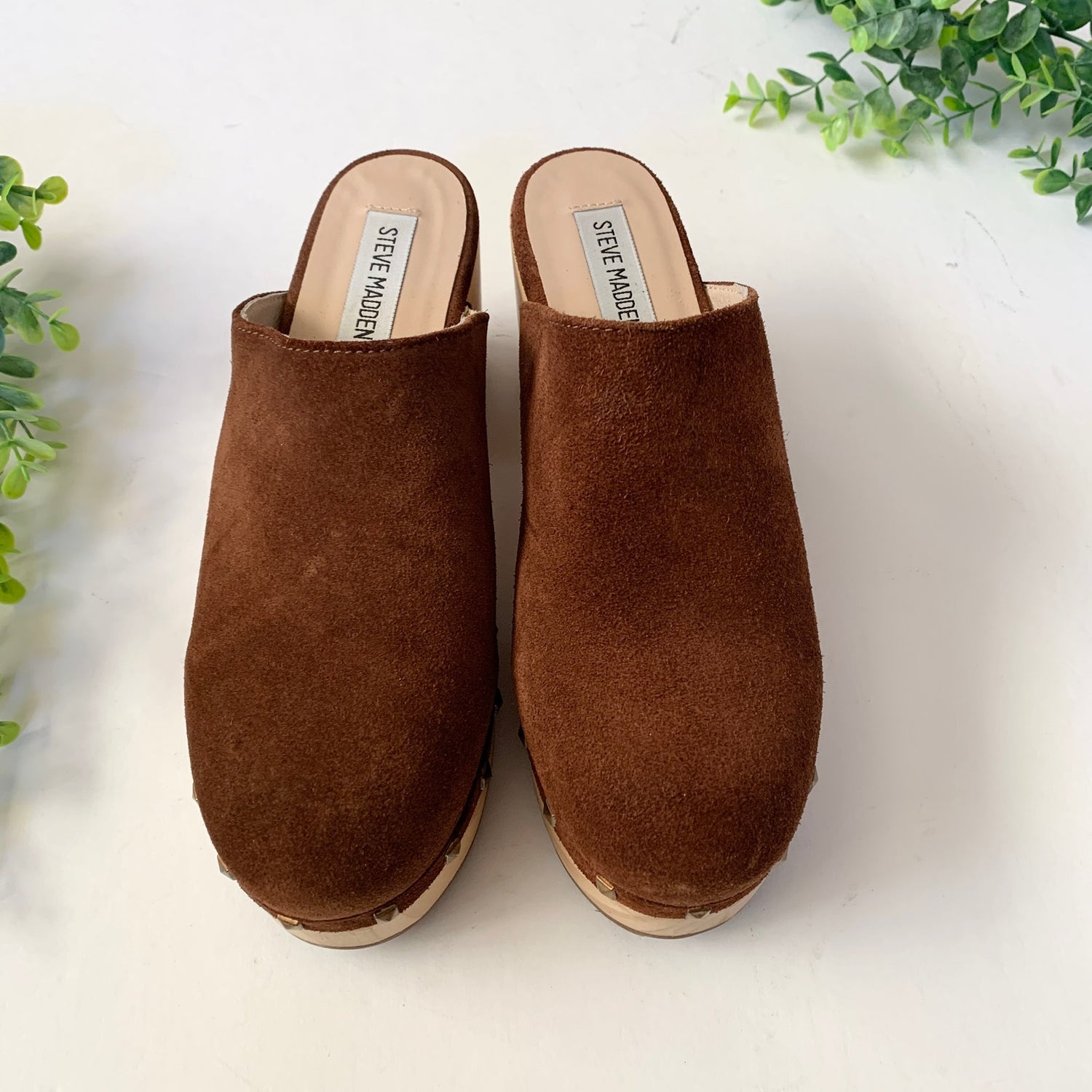 Steve Madden Brooklyn Suede Leather Brown Clogs Size 7